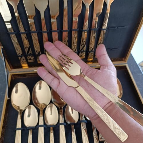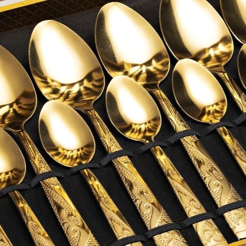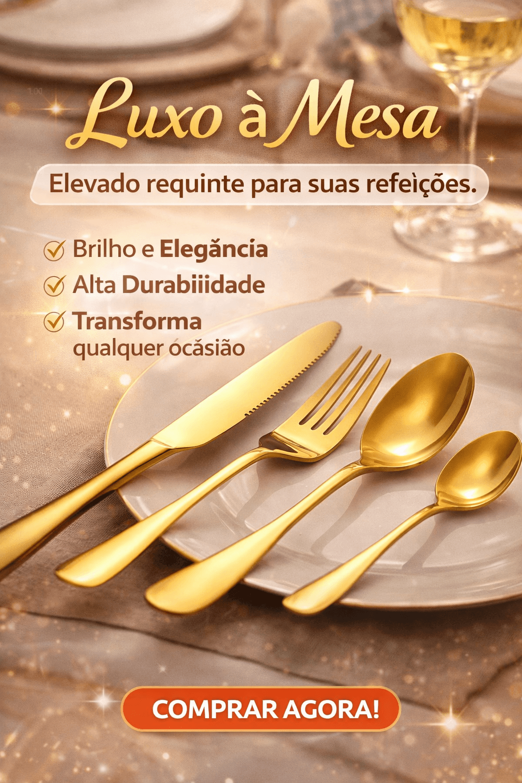 Se você deseja criar uma mesa sofisticada e impressionar seus convidados, precisa conhecer este incrível jogo de talheres dourados! Com design moderno e acabamento impecável, ele transforma qualquer refeição simples em um momento especial e cheio de elegância.