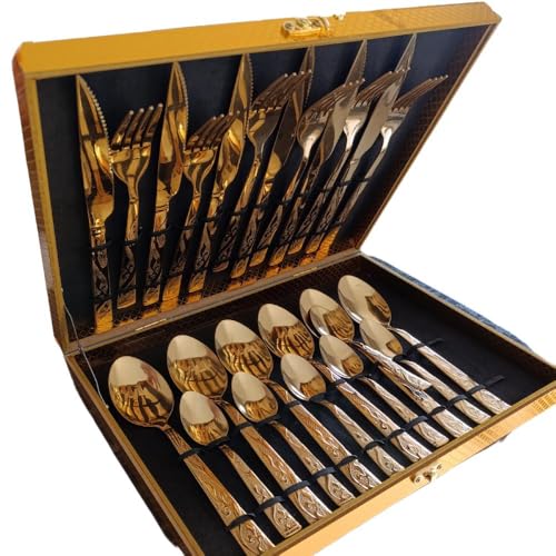 Kit Faqueiro Maleta Dourada 24 Peças Inox Com Dourado